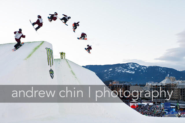 | Overlooking Whistler Village at dusk for Big Air competition |